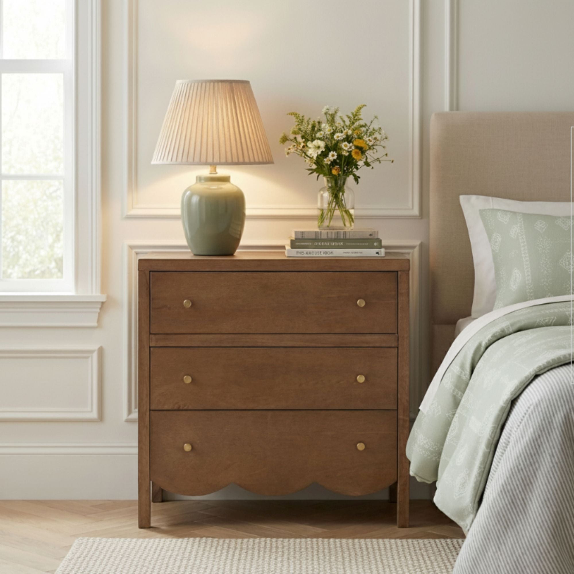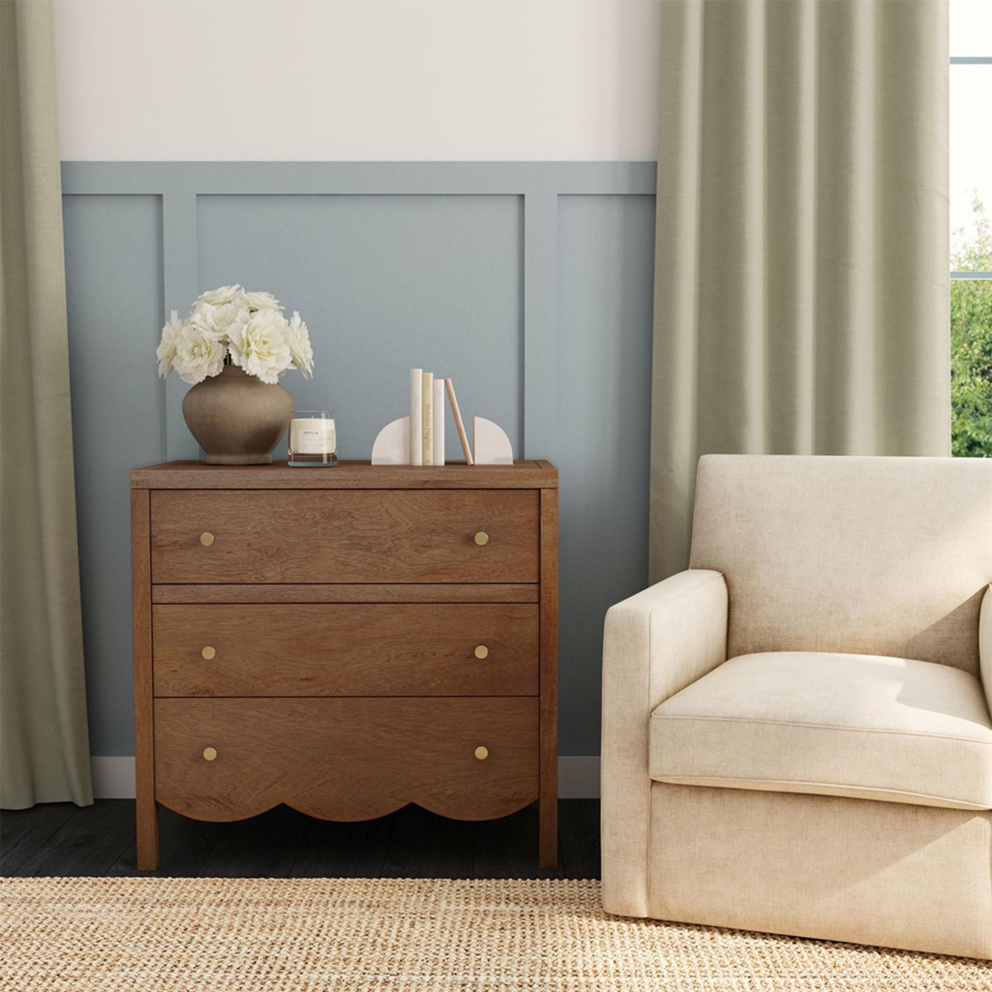 Morrowind 34" W Scallop Bayur Wood 3 Drawer Dresser